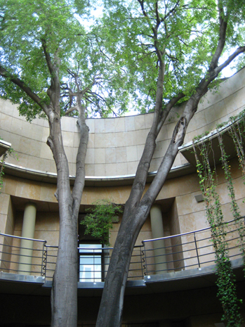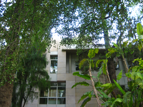 2. Presideix l'entrada al Jardí un lledoner de més de 70 anys que s'alça en el pati circular de l'entrada central. A les plantes superiors hi ha les estances dedicades a la recerca i a l’estudi: els laboratoris, l’herbari, la biblioteca, el banc de germoplasma, a més del departament d’administració i el gabinet de cultura i comunicació.